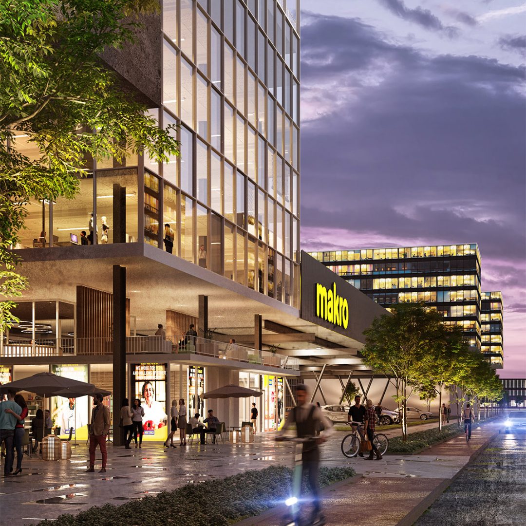 Aus dem zentrumsnahen Areal „Makro Store Amsterdam“, das vor ca. 40 Jahren ausschließlich zur Handelsnutzung gebaut wurde und dessen Potenzial heute nur zu einem Bruchteil ausgeschöpft wird, soll in Zukunft ein modernes, pulsierendes Quartier entstehen. Mit dem New-Work-City-Concept, einer Mixed-Use-Lösung, soll das Areal zu einem nachhaltigen Ort der Begegnung, des Austauschs und der Inspiration werden.