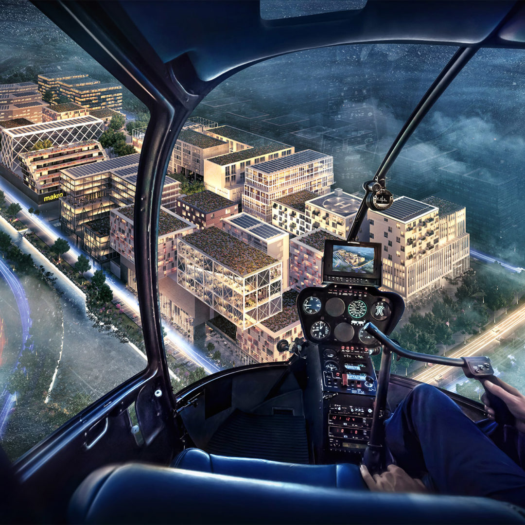 Für die METRO Properties Holding GmbH haben wir aus den Plänen vom Team Studio, Corporate Project Development den zukunftsweisenden Makro Store in 3D visualisiert. Prägnante Key-Visuals – wie z.B. der Blick aus einem Helikopter auf den gesamten Makro Store –zeigen das Projekt aus einer einzigartigen Perspektive. Sowohl beim Architekturkonzept als auch bei der Fassadenentwicklung und Landschaftsgestaltung haben wir unsere Visionen von Anfang an mit einfließen lassen.