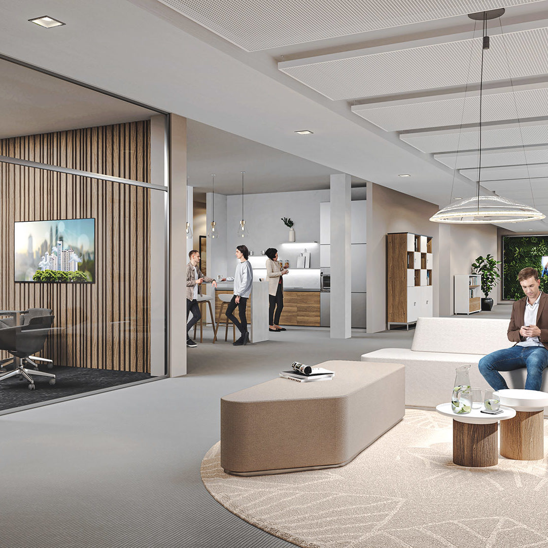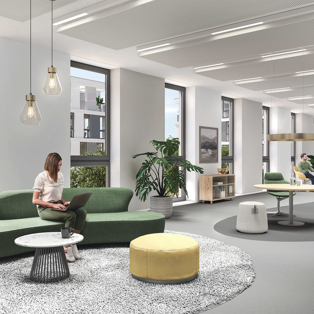 Für den Kunden Unit III visualisierten wir den OLC von außen und innen aus verschiedenen Perspektiven. Mit einem puristischen Interior-Design machten wir die Räumlichkeiten zu einem Arbeitsplatz der Zukunft und verliehen jedem Raum durch ein durchdachtes Farbkonzept seinen eigenen Charme.